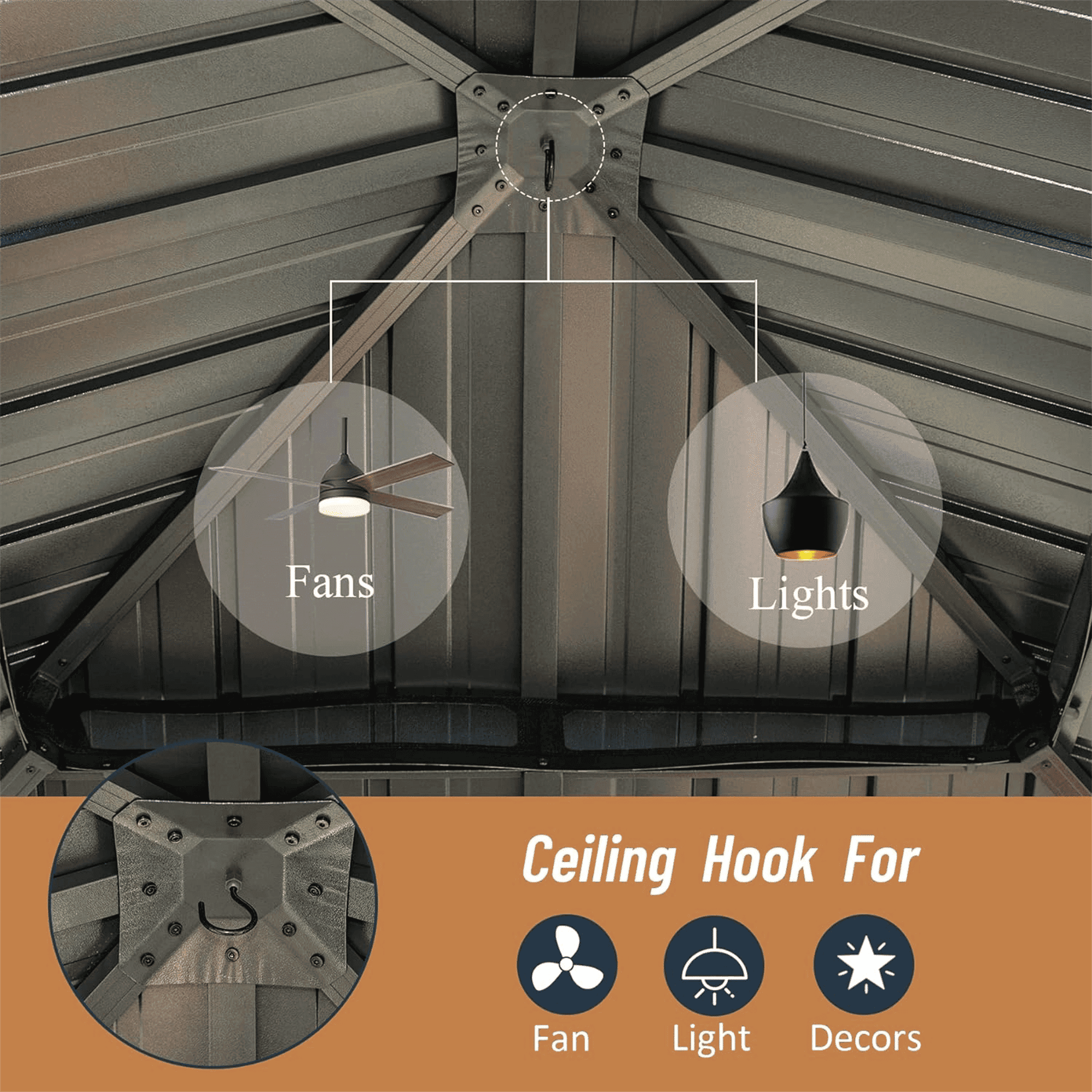 Durable Premium Material- This hardtop gazebo pavilion made from durable materials such as aluminum and galvanized steel, can withstand harsh weather conditions such as rain, wind, and snow. It can also resist fading, rust, and corrosion, ensuring that it lasts for many years.