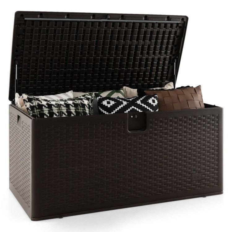 1.Large Storage Capacity: The 120 gallon/130 gallon patio deck box is a perfect storage solution for your home, which can accommodate pillows, clothes, blankets, toys, tools and sports equipment, etc. Any often-used items placed on the top can be easily accessible. Overall Dimension: 50" x 26.5" x 25.5" (L x W x H)/50" x 29" x 25" (L x W x H)