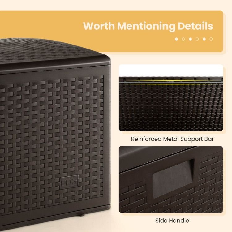 4.Multi-purpose Box for Indoor and Outdoor: The patio deck box can be used as a comfortable outdoor bench with strong weight capacity. Besides, the storage bin is designed with side handles for easy carrying around, whether used for indoor, patio, garden, and poolside.