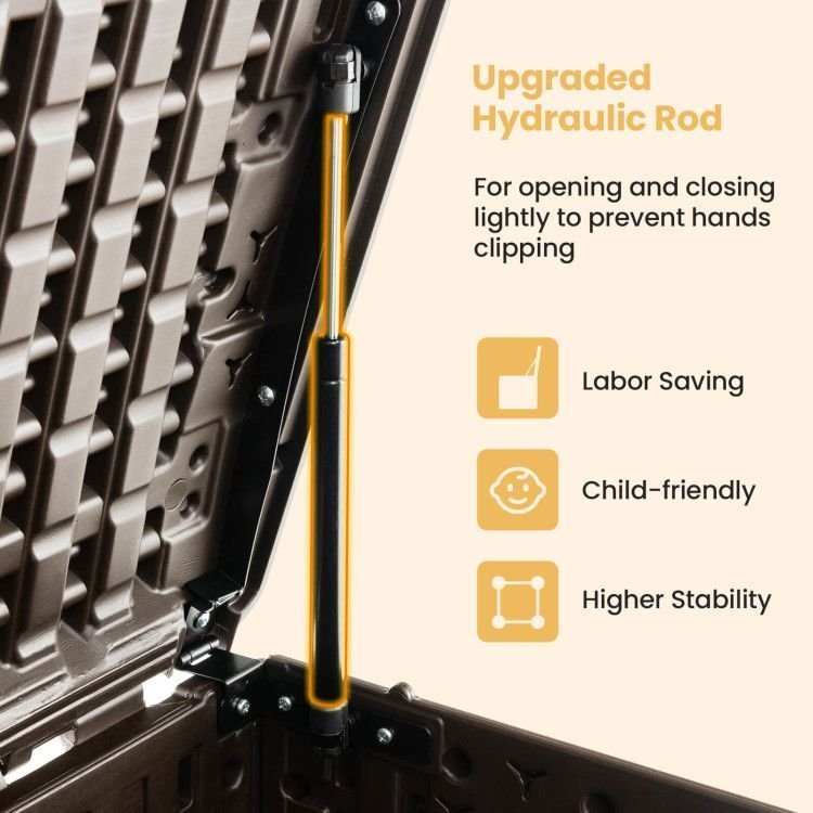 3.Lockable Lid and Premium Hydraulic Rod: For safety concerns, the lockable lid can avoid the loss of patio and pool accessories and prevent the entry of reptiles. For a better user experience, Upgraded hydraulic rod is designed for opening and closing lightly to prevent hands clipping. Note: The lock is not included.