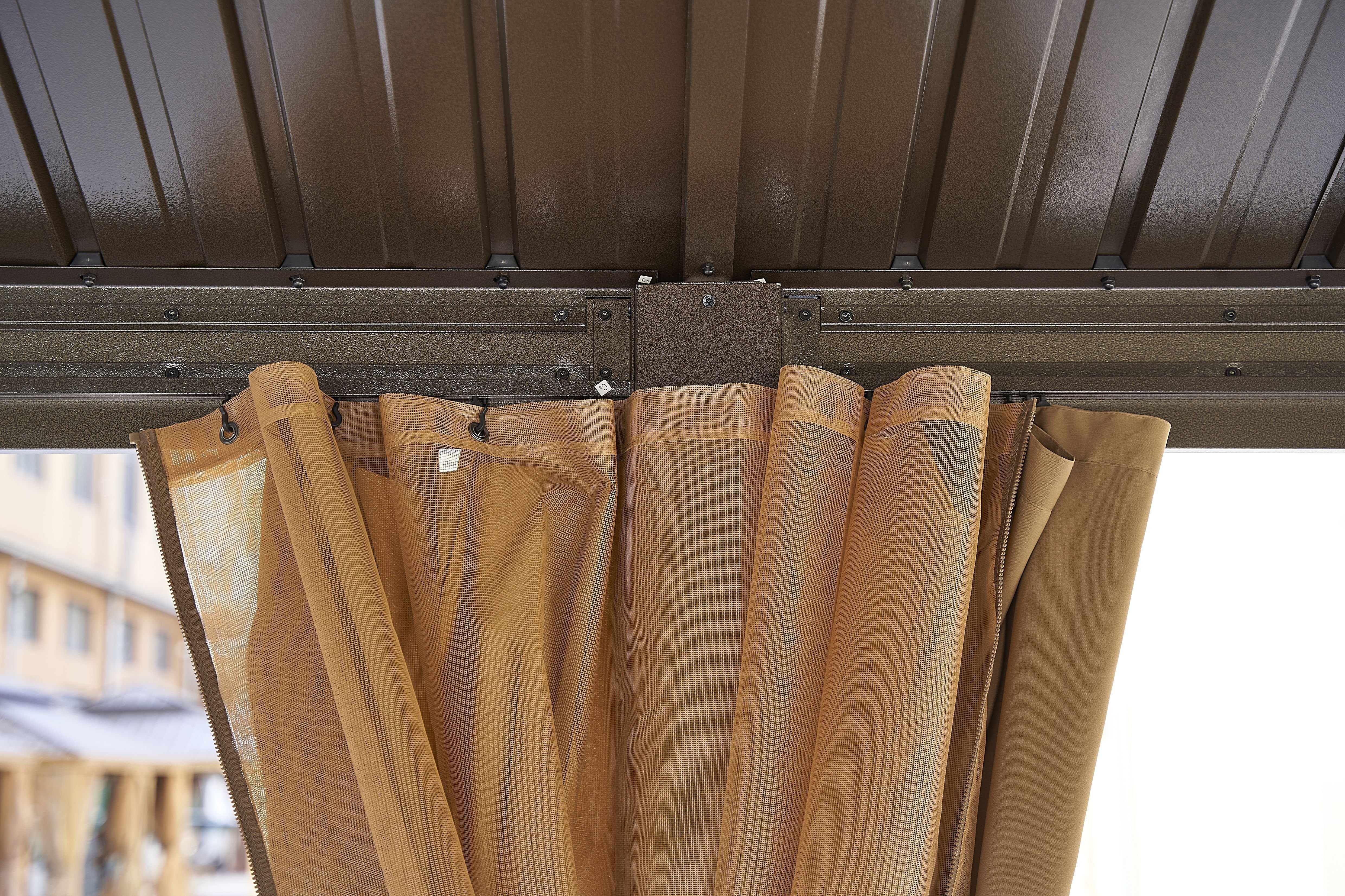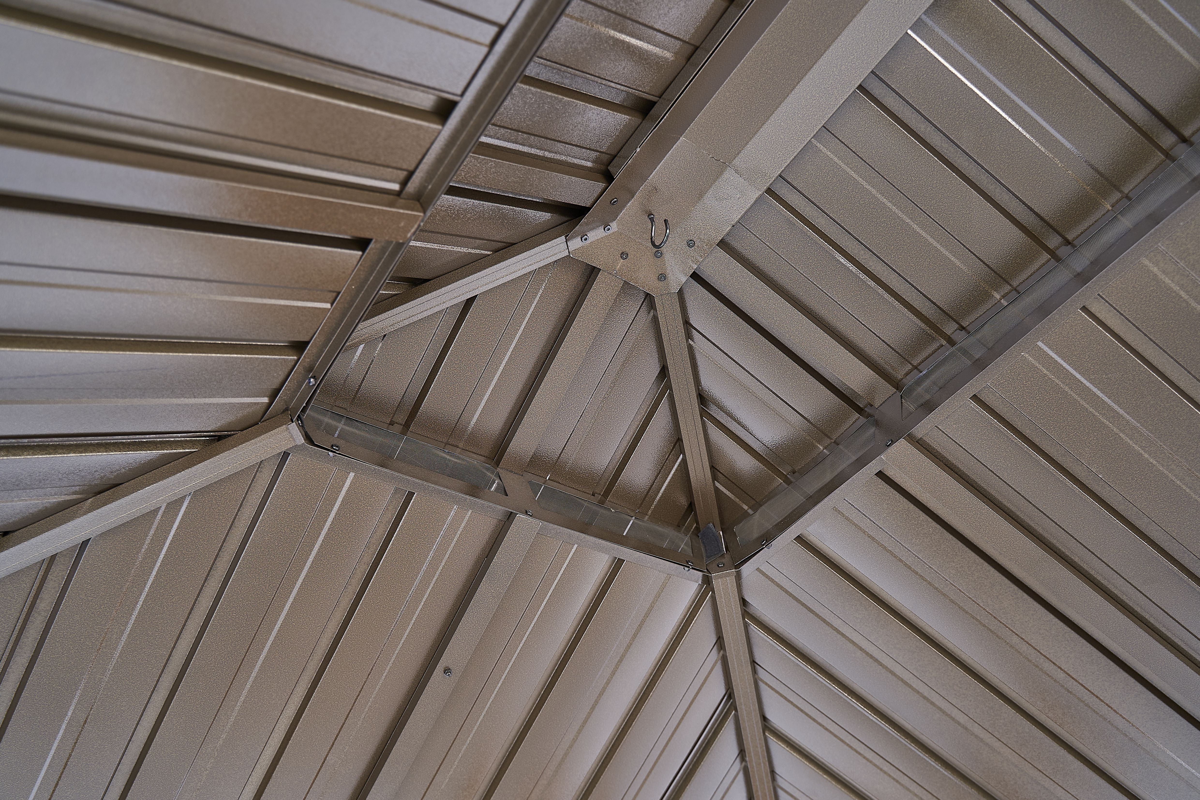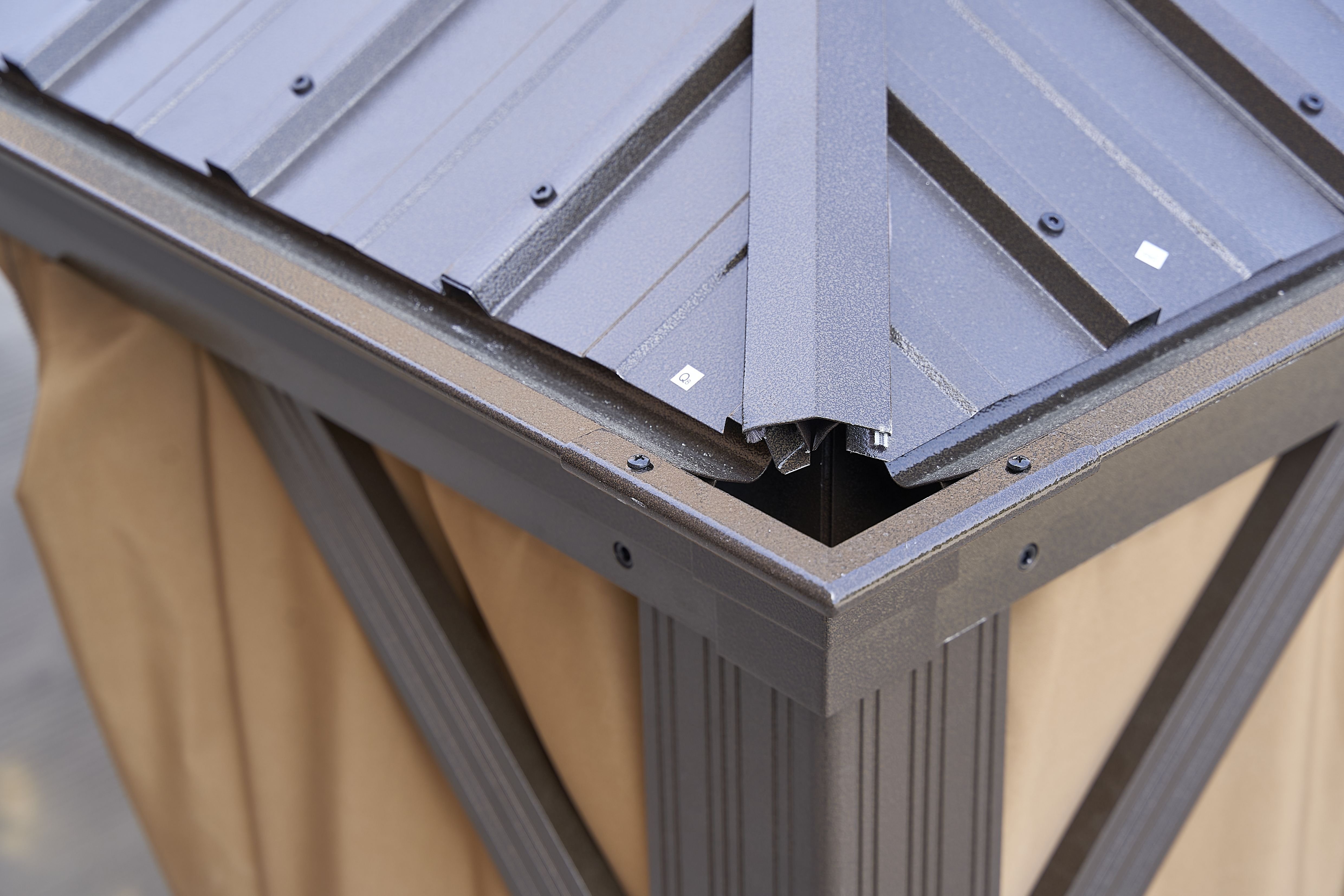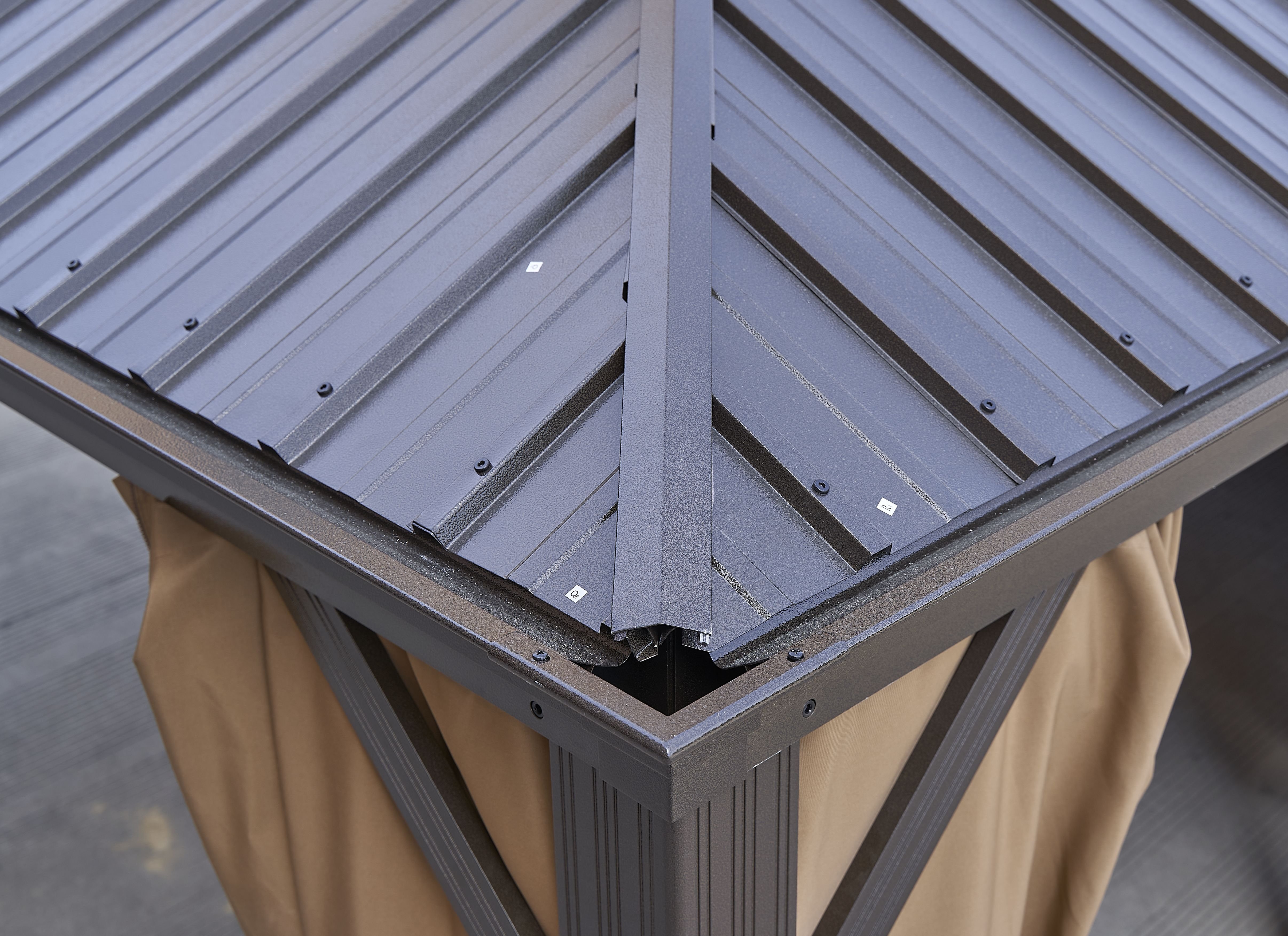 the double-roof hard top is made of galvanized steel, and the frame is made of aluminum. Our permanent patio gazebo is applicable all year round with its weatherproof, fade-proof, and rust-proof features.