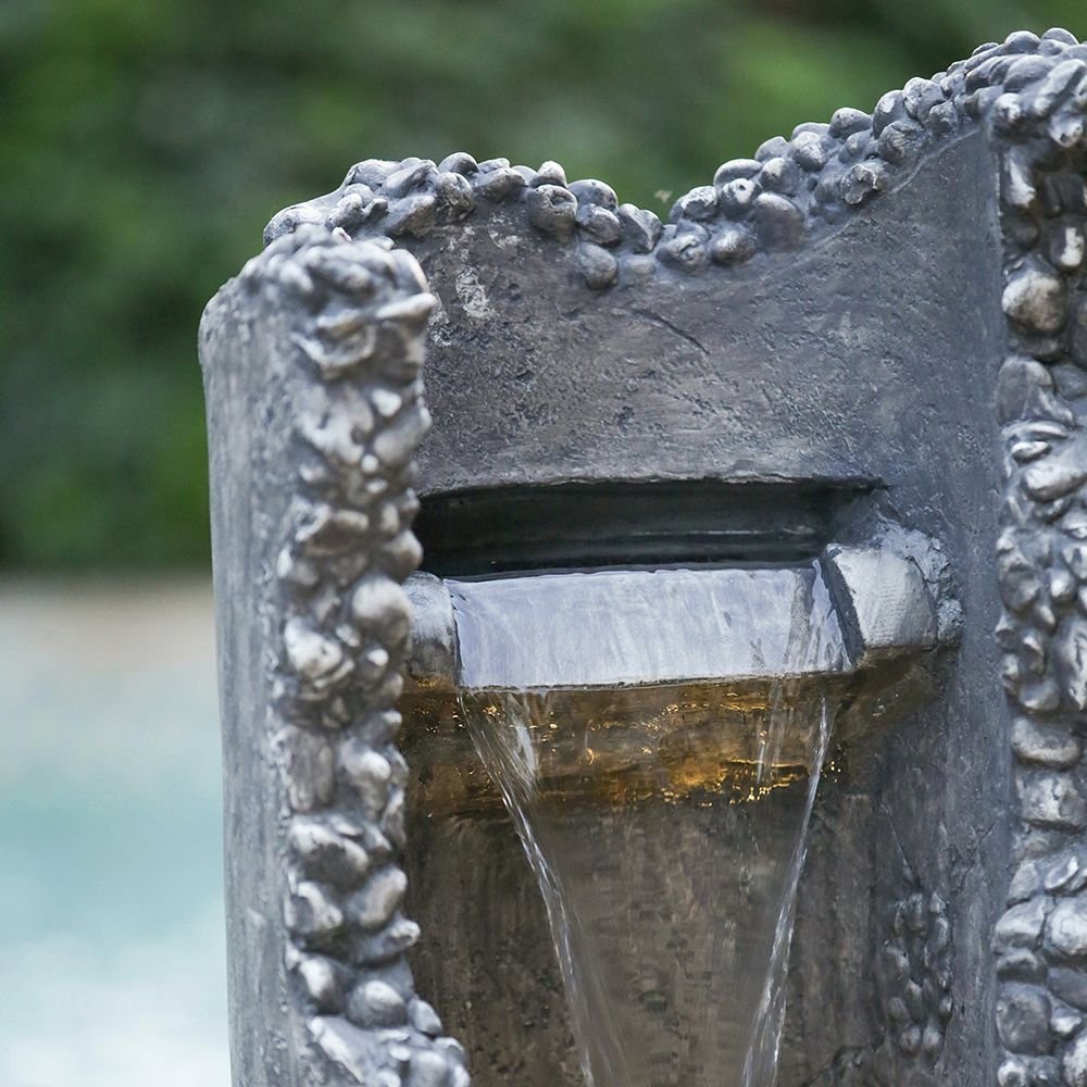 Relax to the smooth sound of water flowing from the stone gray finish look waterfall fountain, washing away the stress of a hectic day and bringing a natural element to your environment.