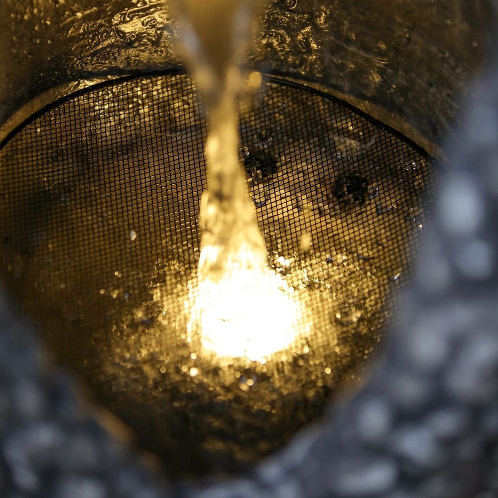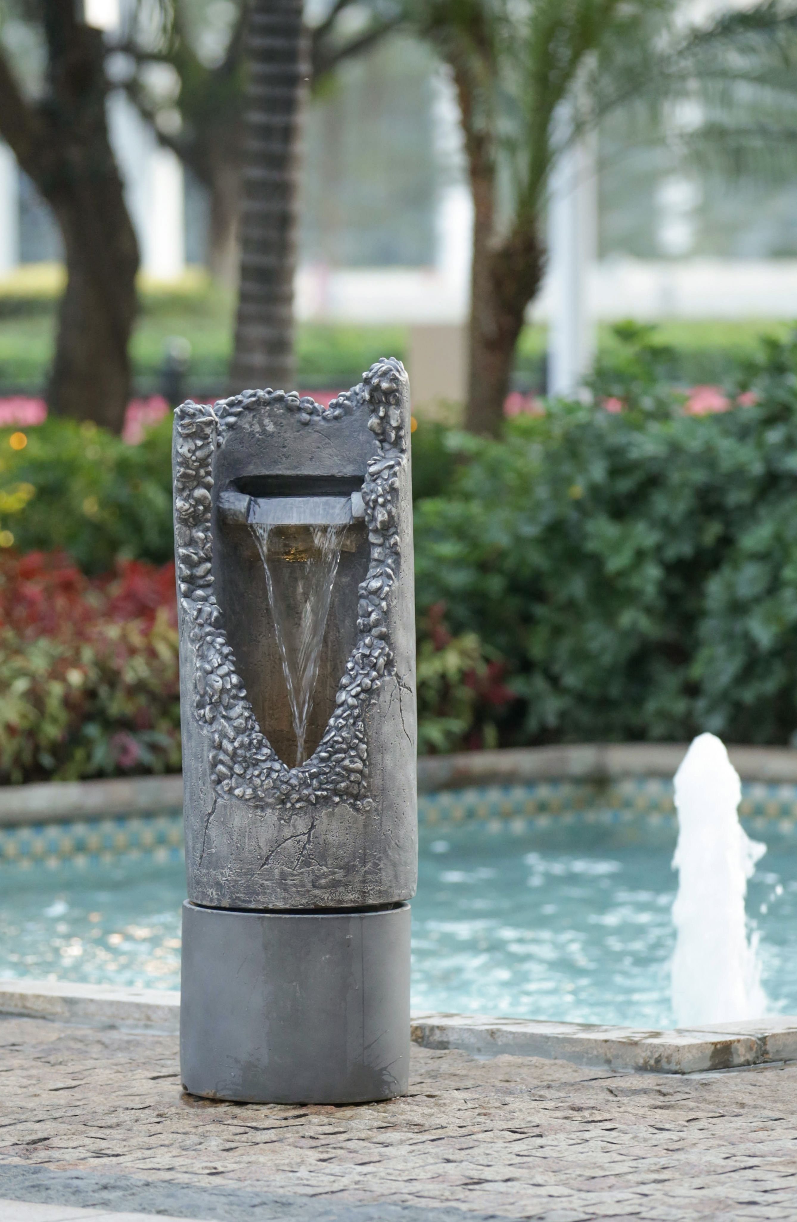 Give a garden or other outdoor setting the tranquil sound and rustic decorative accent it needs with this stone fountain. Within this tall, stone-colored column, water trickles and falls through the purposefully cracked opening. This tall, slender fountain will fit in with just about any kind of natural outdoor setting.