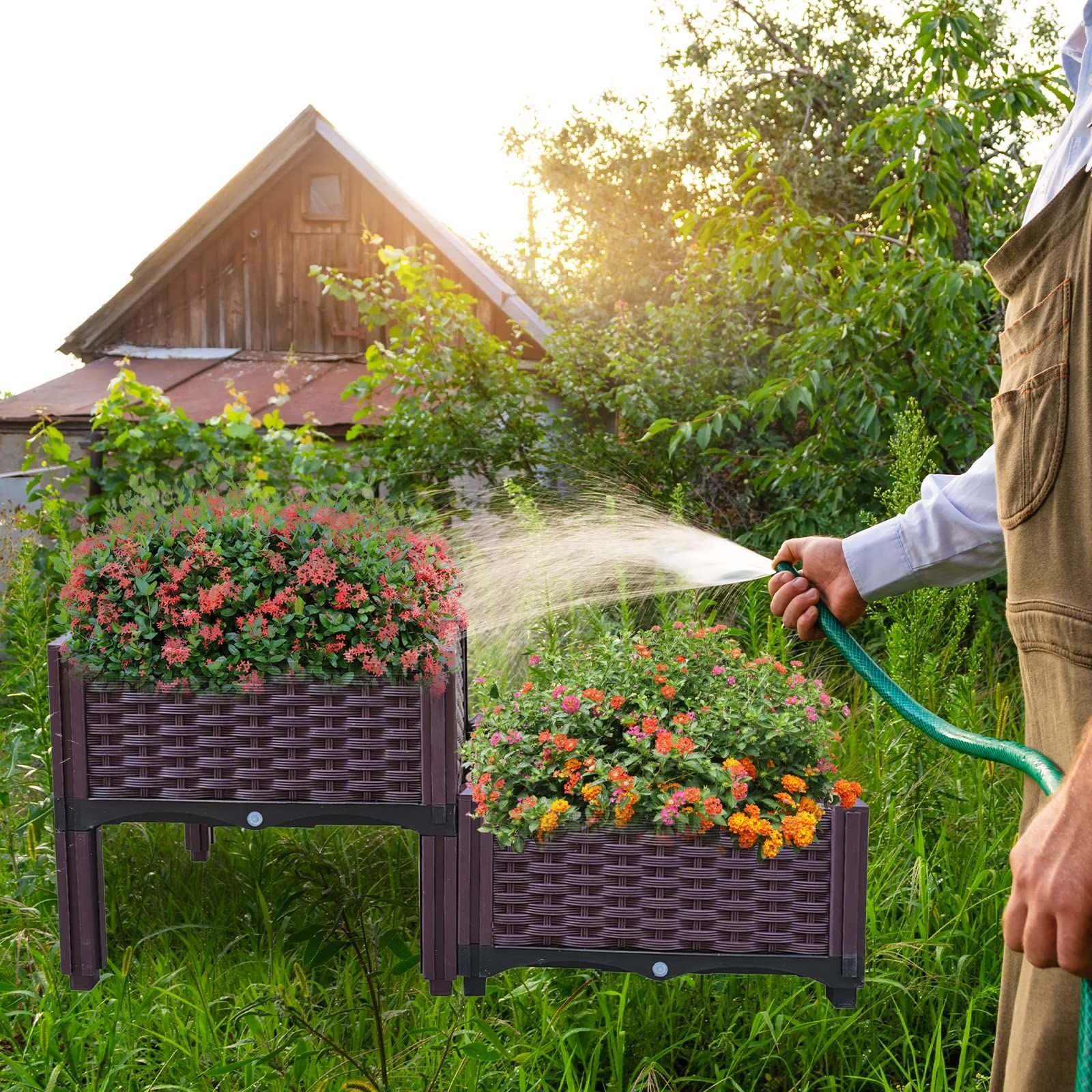 4.Wide Applications- This plastic raised garden bed planter is perfect for planting in the balcony, terrace, garden, backyard, patios, or the corners in your living room. It enables you to grow flowers, vegetables, fruits, and herbs practically anywhere.