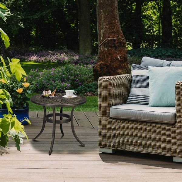 23.6inch Phoenix Table Round Garden Cast Aluminum Table Bronze