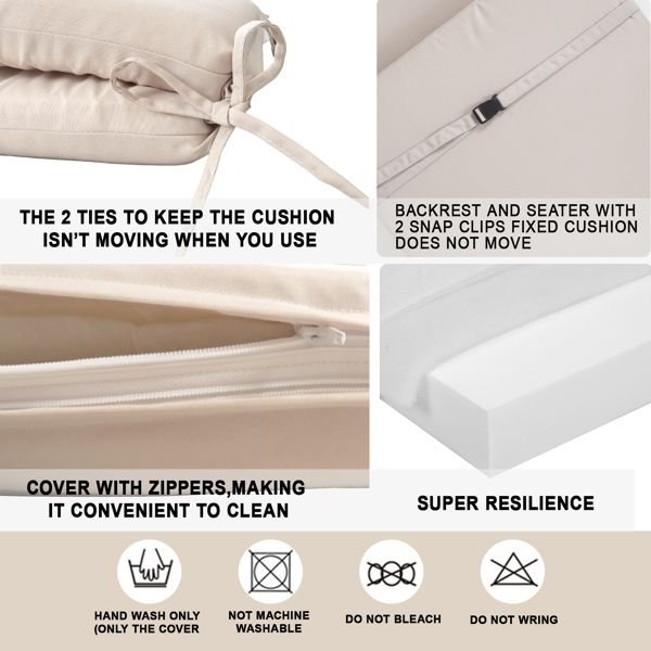 Practical Design: An adjustable strap is designed at the back of the cushion cover, which greatly increases the adaptability of various types of chaise lounges.The seat cushion is also provided with straps, hold the seat in place
