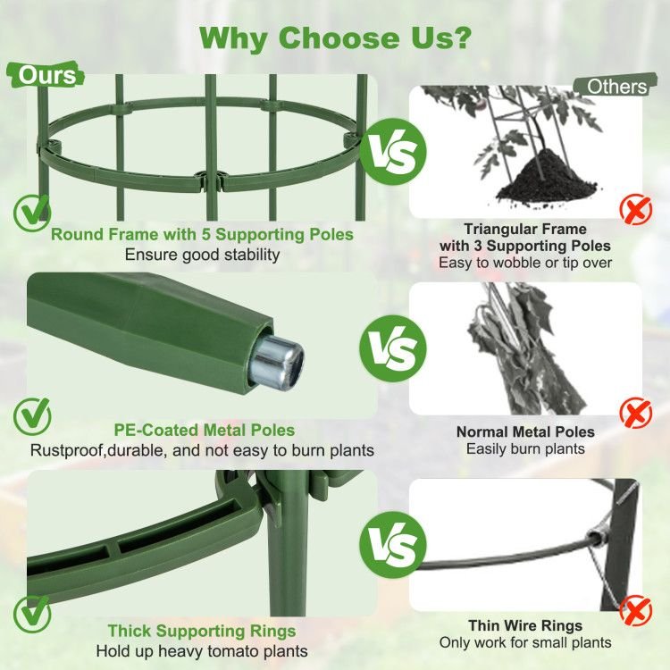 -In contrast to thin wire rings that only work for small plants, our thick supporting rings hold up heavy tomato plants