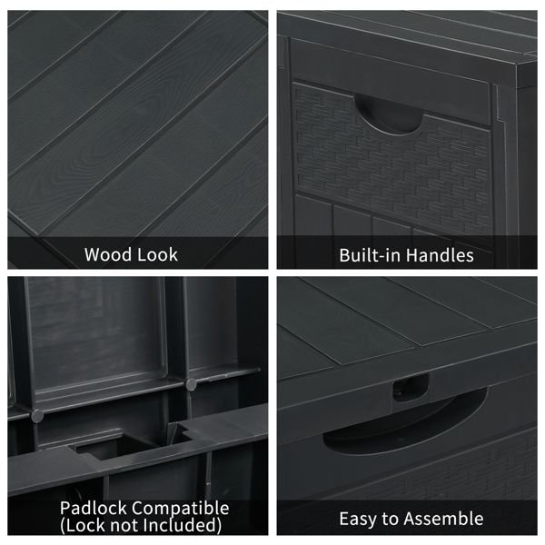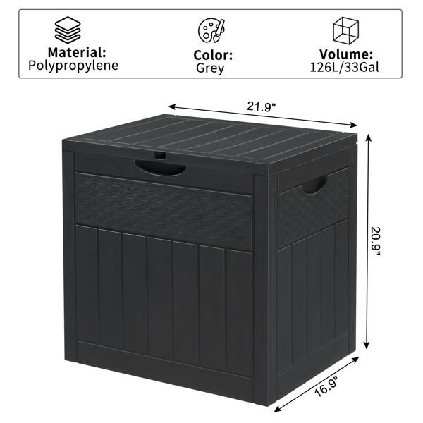 33gal Square Wood & Rattan Plastic Garden Storage Box Gray