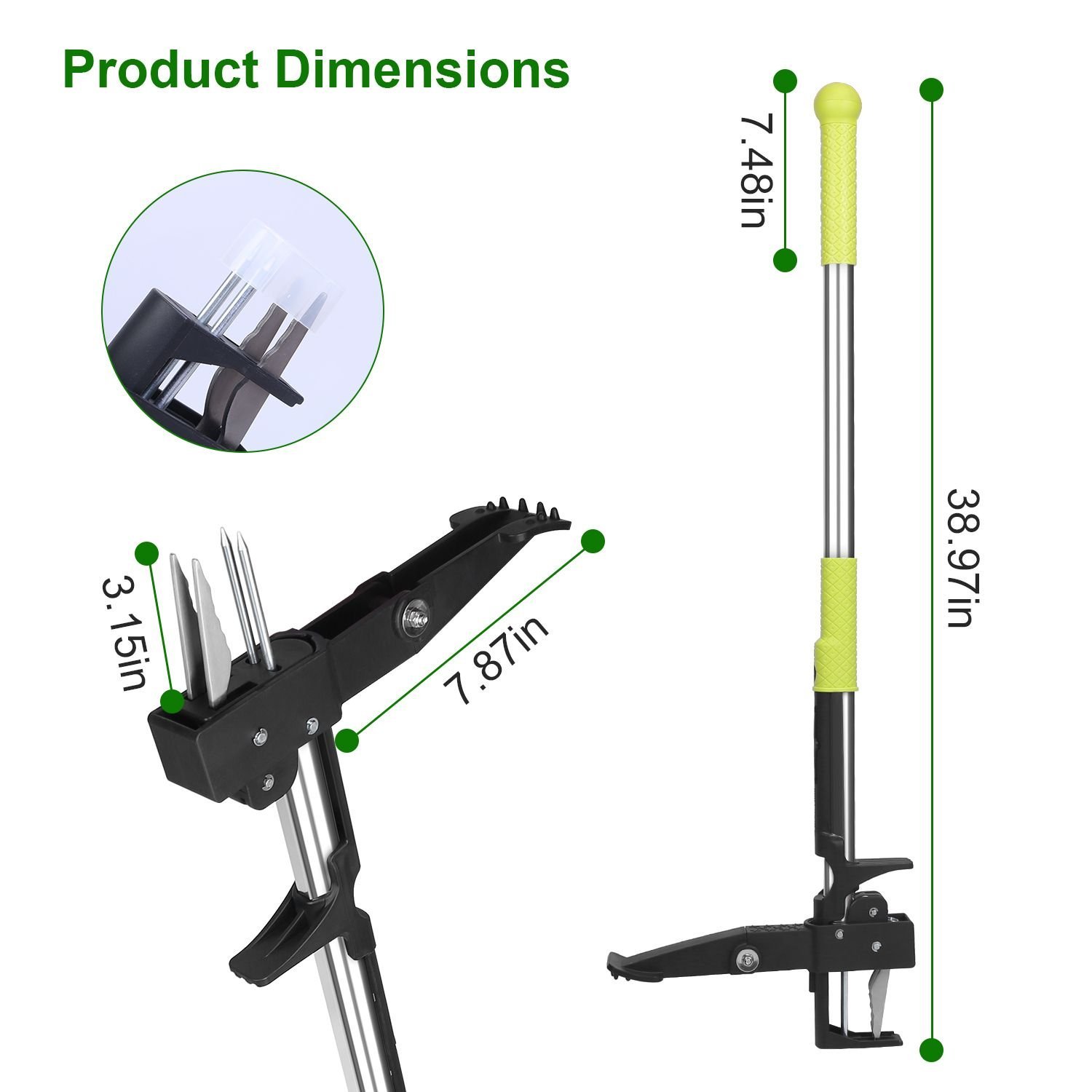 *Wide Application*:This 38.97in weed remove tool has ergonomic design,perfect for eliminating dandelions,crabgrass,chickweed,thistle and other types of weeds. Ideal gift for your friends who enjoy working in the yard.