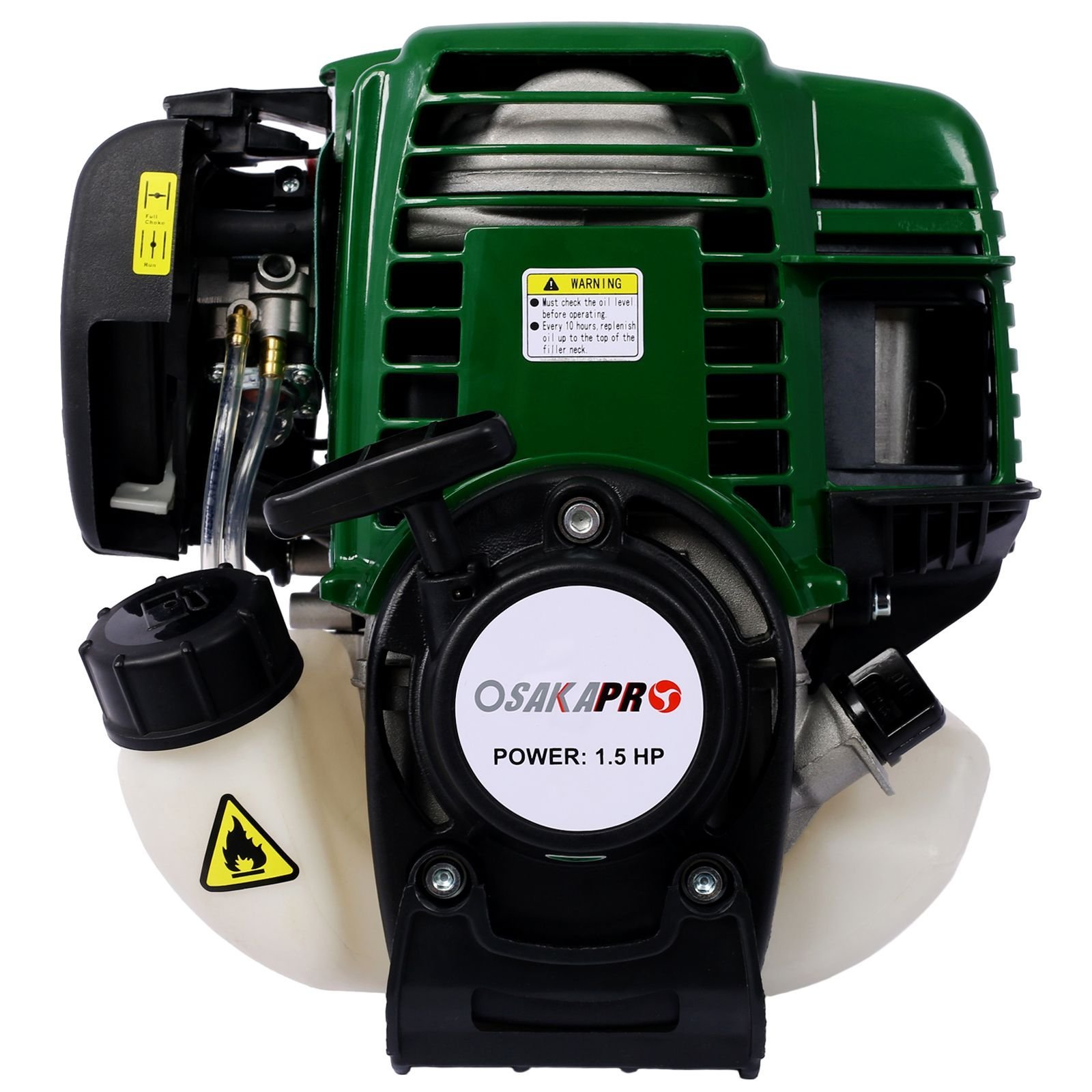 The 4 in 1 Multi Purpose Tool is powered by a 38cc 4 cycle gas full crank shaft engine. Full crank shaft design reduces emissions, increases fuel efficiency & provides longer life. The starter is designed to pull easily & start quickly. Included in the kit are 4 professional grade attachments. Feature:4-in-1 Combo includes trimmer attachment, brush cutter blade, hedge trimmer attachment and rotatable pole saw attachmentVersatility lets you complete most all of your lawn care tasks throughout the year with just one tooNylon line trimmer attachment designed for mowing and trimming around obstaclesHedge trimmer articulates to multiple positions which allows to trim bushes at multiple anglesFull crank shaft design reduces exhaust, increases fuel efficiency and provides longer lifeHigh grade precision cutting blades gives you a better finish with less effortSpecifications:Color: Dark GreenEngine Displacement: 38ccHorsepower: 1.5Engine Type: Air Cooled 4-Stroke Gasoline EngineStart Type: Recoil StartMax. Engine Speed: 6500RPMBlade Rotation Direction: Counter-ClockwiseCertifications: EPAPackage Content:Power HeadHard shaftString TrimmerBrush CutterHedge TrimmerPole SawManual