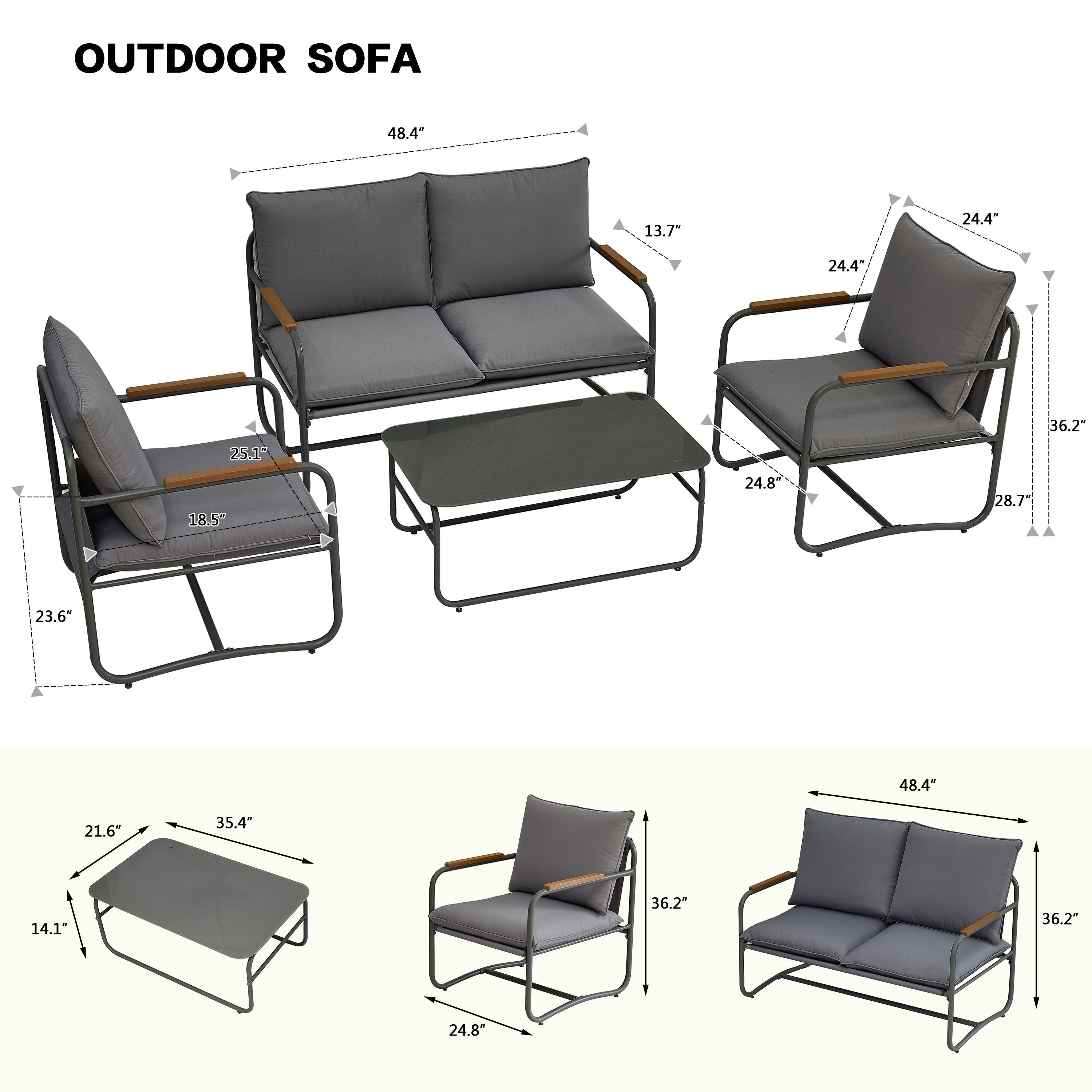 Easily combined into different configurations, this outside patio set adds a stunning element to your backyard, lawn, or recreational area. Its chic armrest and tabletop colors can blend in your different environment style, while its right size always provide the place for you to have a rest. The outdoor patio 4-piece set provides the right occasion for any conversation, encouraging you to chat more, gather more, and enjoy a good time.
