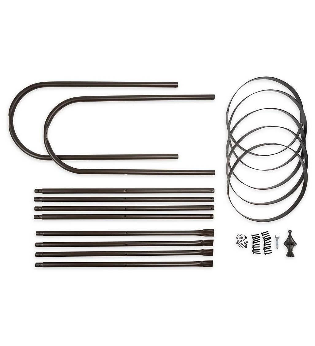 This 60-inch Bronze Finish Steel Outdoor Garden Trellis Obelisk adds a visual accent to flower and herb gardens. It features an open obelisk shape that's ideal for vines and various climbing plants, like tomatoes and clematises. Crafted from weather-resistant, powder-finished stainless steel, this garden trellis has a rounded silhouette and rigid support bands stamped with a delicate floral pattern. A cast-iron finial sits on top for a French country look. This trellis is a versatile item: It fits in planters or pots, or it stands on its own with the proper hardware to anchor it in place. Hard-curated by Kelly Clarkson.
