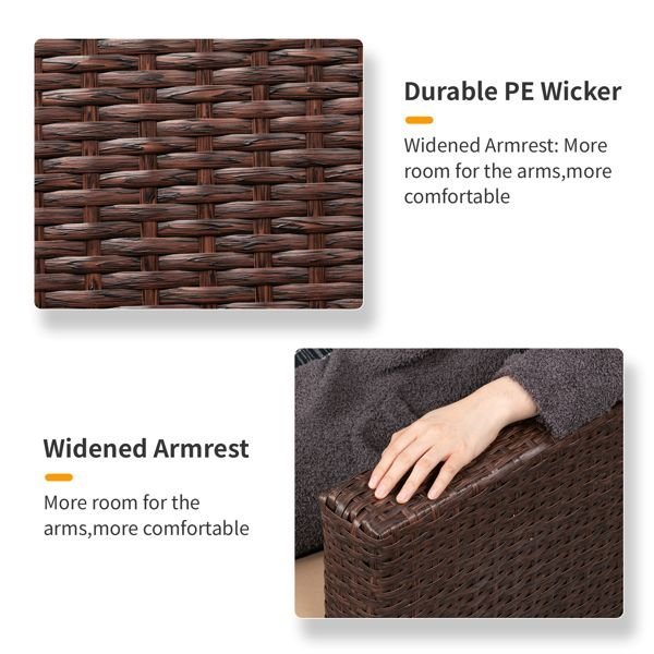 7 Pieces Wood Grain Patio PE Wicker Rattan Corner Sofa Set