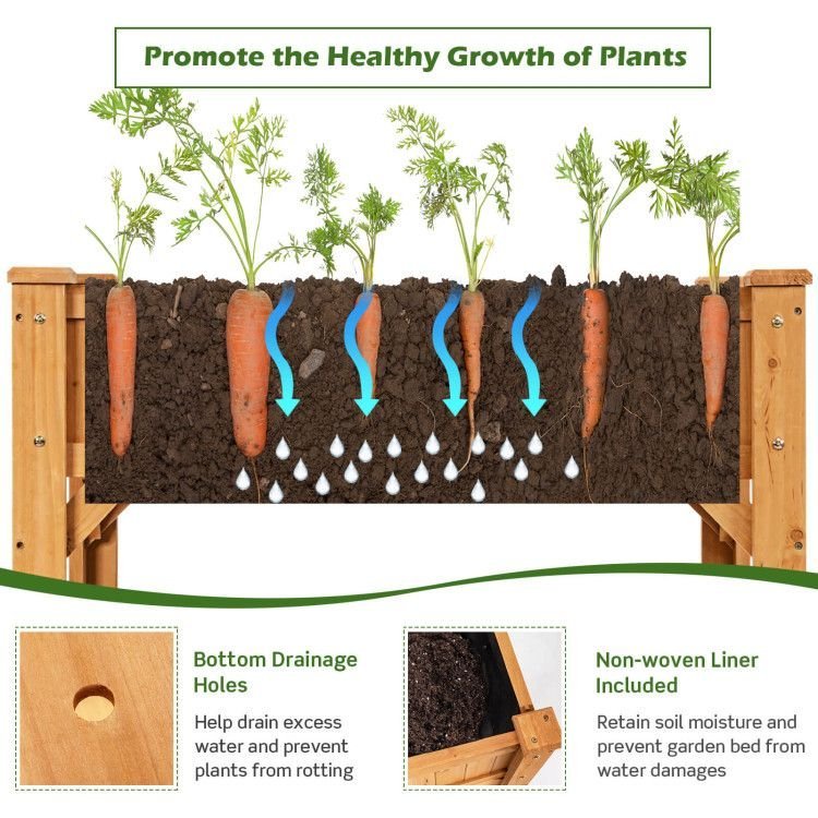 Made of high-quality natural fir wood with premium paint, this raised planter bed ensures great stability and durability for long-term use.