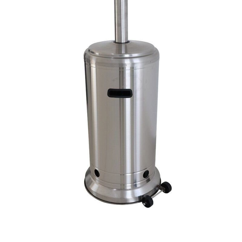 Product TypeStanding patio heaterFinishStainless SteelPowder Coated FinishYesPrimary MaterialStainless SteelPrimary Material DetailsAluminumPieces Included1Fuel TypePropaneGas Tank CompartmentYesB.T.U. Output46000 BTUIgnition TypeElectronic ignition fuel Capacity20 lb.Heat Range Diameter15'Hose Set IncludedNoAutomatic Safety ShutoffYesTip Over Shut Off Safety SwitchYesPilot LightYesAnti-Tilt Safety DeviceYesWeather ResistantYesPortableYesWheelsYesAdjustable TemperatureYesWeighted BaseYesLight IncludedNoRemote Control IncludedNoLocationOutdoor Use OnlySupplier Intended and Approved UseResidential Use; Non-Residential UseSafe for Use Under Covered PatioYesBattery or Battery IncludedYesSpecificationsETL ListedYesAssemblyAssembly RequiredYesWarrantyCommercial WarrantyYesProduct WarrantyYesWarranty Length1 YearFull or Limited WarrantyLimitedWarranty Details 2Manufacturer WarrantyWarranty DetailsManufacturer Warranty