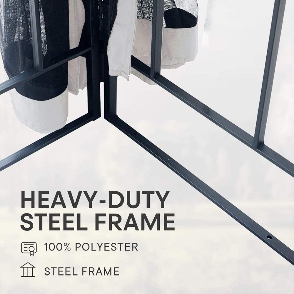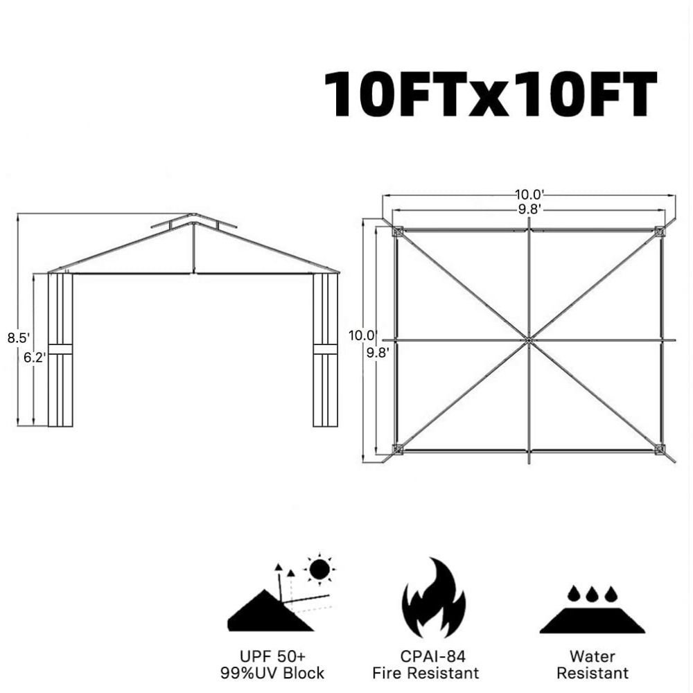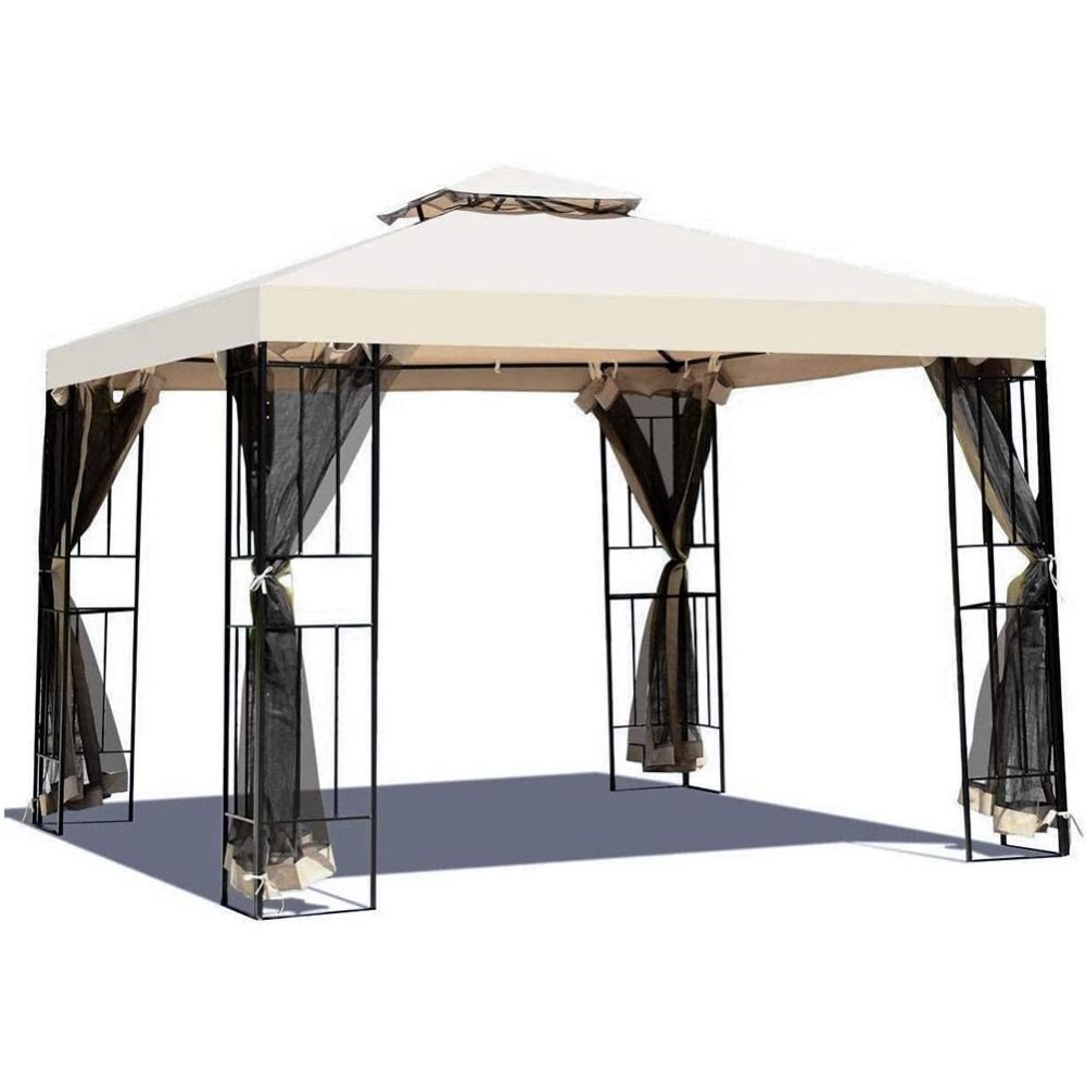 Combines a magnificent backyard design with plenty of sun shade protection, create a wonderful depth for your outdoor space. The sturdy, safe, steel construction with special attention to quality and durability, will last for years to come. The steel construction with a durable, rust resistant, powder coated finish. Stylish, convenient and functional.Exceed your expectations in the products you buy. Features: High quality mosquito netting w/ zippers, fully enclosed keep you from disturbing of mosquitos and other insect Double-tier top cover design not only looks good but also to make Good ventilating High grade powder coated steel frame resists rust, chipping and peeling UV treated polyester canopy for durable shade, protecting you from the sun and rain Ideal for daily or recreational use, such as parties, outdoor events, camping, picnics and any other occasion