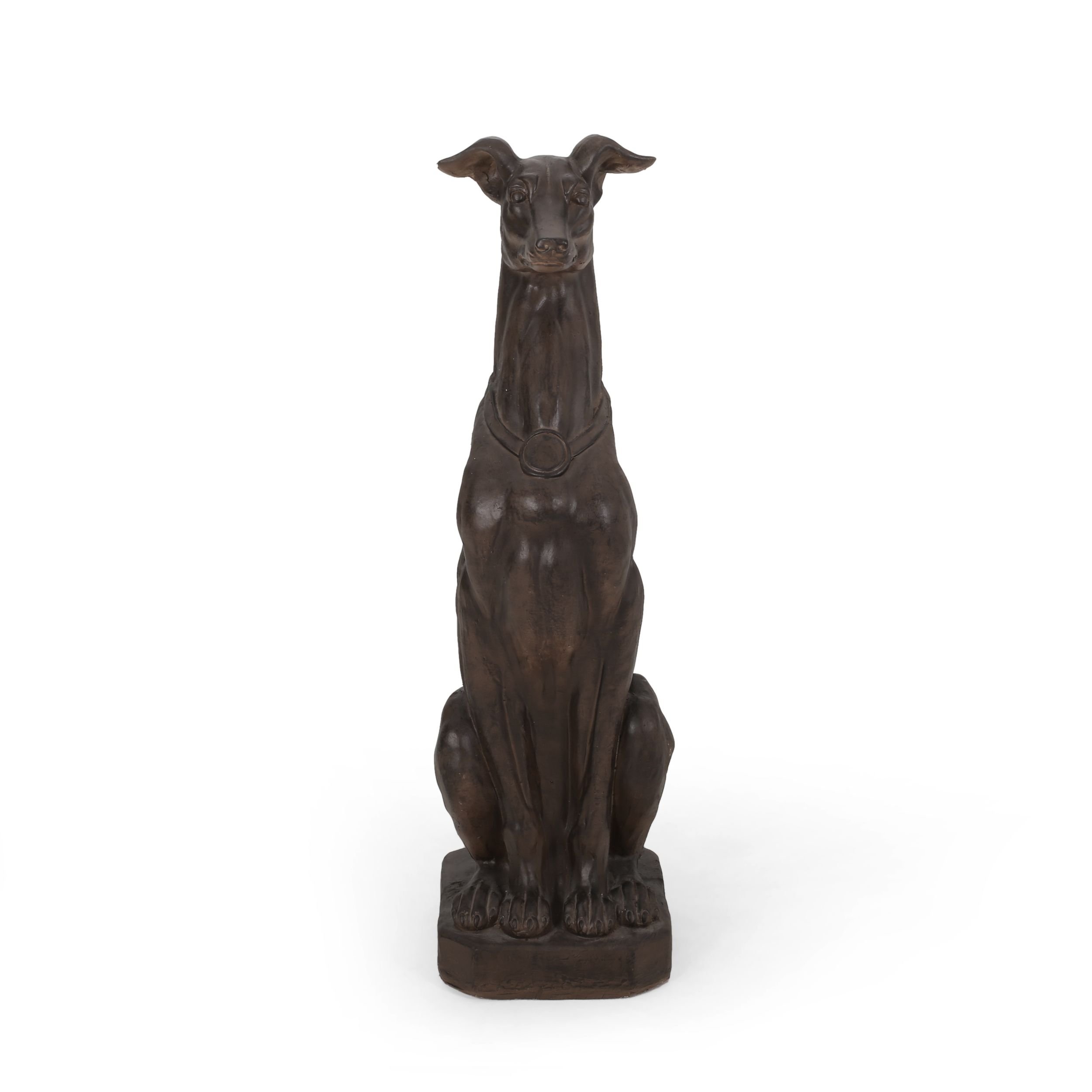 Offer your home a lovable depiction of man's best friend to bring a regal charm to your outdoor space. Beautifully crafted from cast stone, our garden statue features an incredible greyhound design consisting of gorgeous details such as intricate facial features and a proud medal around its neck. This statue offers a durable structure and weather-resistant properties making this a perfect addition to your backyard or patio space. Finished with a neutral brown wash, this exquisite garden accessor