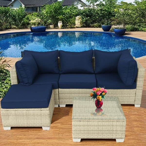 [Easy to assemble]This set of patio furniture features 5 outdoor sectional sofas, including 1 coffee table, 3 middle sectional sofas, and 1 ottoman, and the necessary tools. Simply follow the tutorial for easy installation