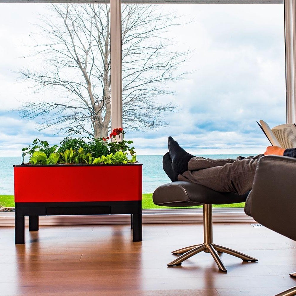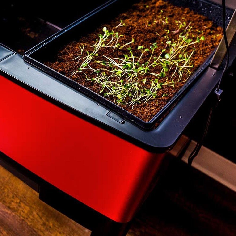 Got plants? Grow food, anywhere with the flashy Red Mobile 33.5 in x 24.25 in x 23 in Self Watering Raised Garden on Wheels. Grow high-nutrient micro-greens with the perfectly sized footprint to fit a standard 10 x 20 tray. Grow your own organic salads, greens and herbs indoors through the winter. Get a head start by starting your seeds early. Or, once the summer arrives bring the garden outdoors for natural light. Self-watering tub, once your garden is established with deep roots, you can water your garden with the self-watering feature this brings water to where the plants need it most - at the roots, and it allows you to not have to water every day.