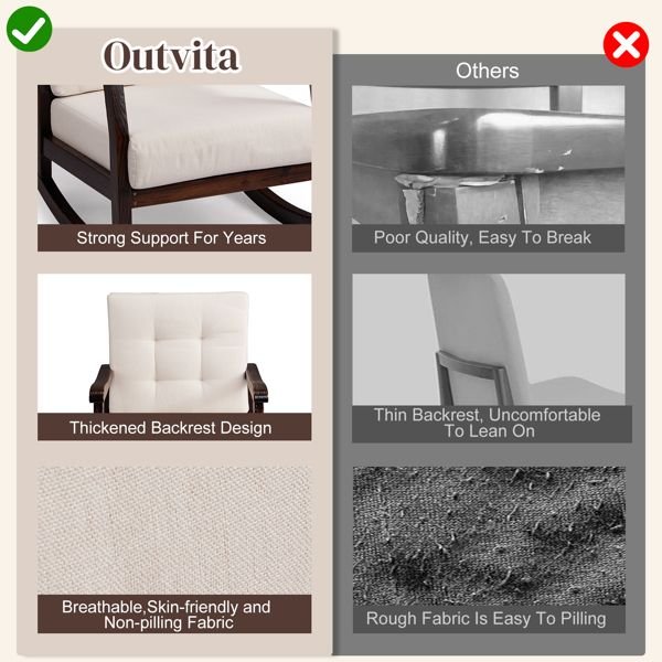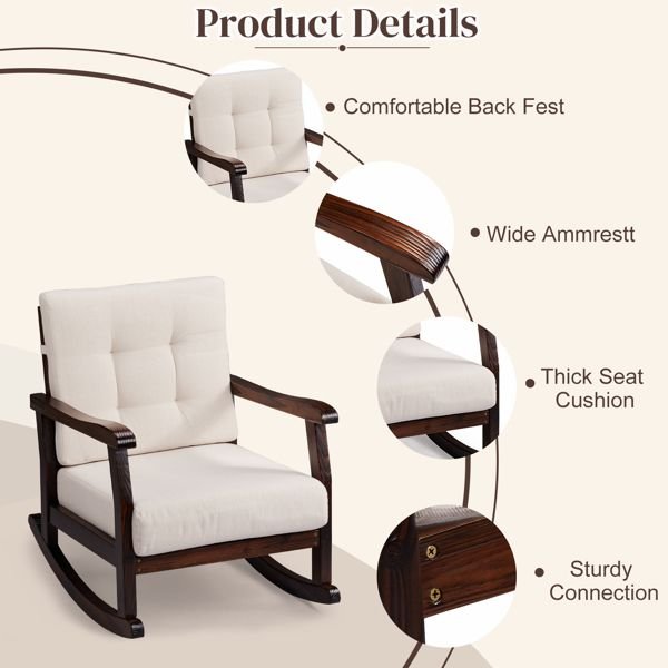 5. Quick Assembly & Easy Maintenance: Setting up your new rocker is quick and hassle-free with the included hardware and instructions. The smooth wooden frame is easy to maintain—simply wipe it down with a damp cloth to keep it clean. The detachable cushion covers can also be easily removed for machine washing.